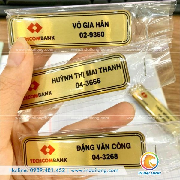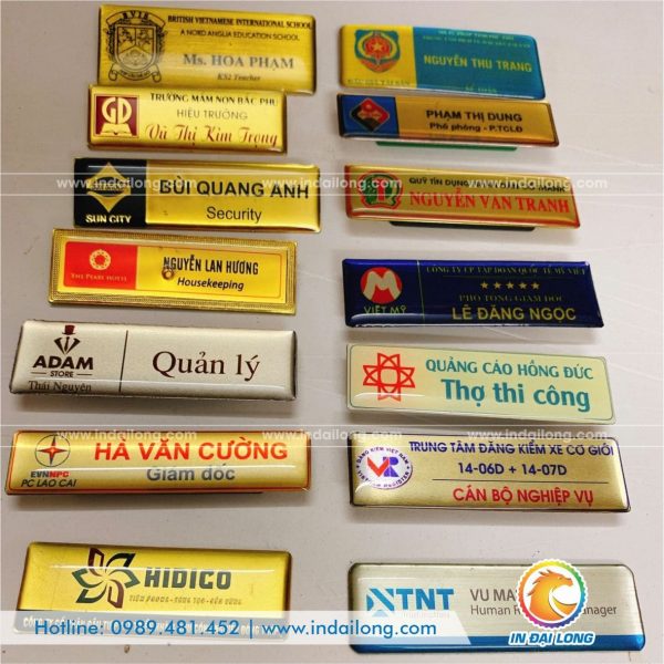 In Đại Long xưởng làm bảng tên nhân viên giá rẻ uy tín nhất ở Hà Nội. Bạn đang cần làm bảng tên nhân liên hệ ngay để được hỗ trợ nhanh nhất, thủ tục hóa đơn (VAT) hợp đồng nhanh gọn chuyên nghiệp. Dưới đây là các mẫu bảng tên nhân viên đẹp thông dụng cho bạn: Bảng tên nhân viên cài áo in tên cố định bằng đồng, đồng ăn mòn, mạ vàng. Bảng tên nhân viên thay đổi tên.